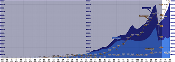| 従業員数(人) | 11,898 | 12,941 | 14,646 | 15,189 | 17,736 | 20,762 | 25,700 | 33,016 | 40,988 | 44,642 |