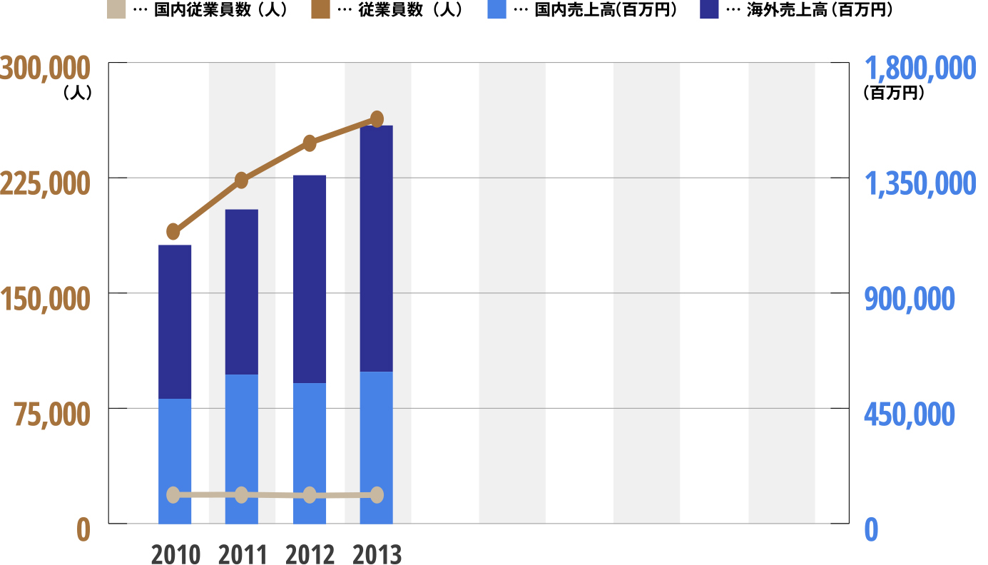 | 従業員数(人) | 192,500 | 226,300 | 250,600 | 257,100 |
