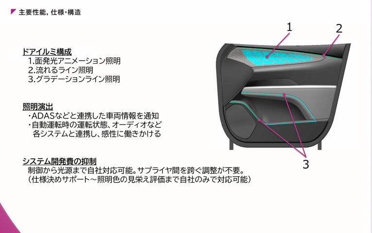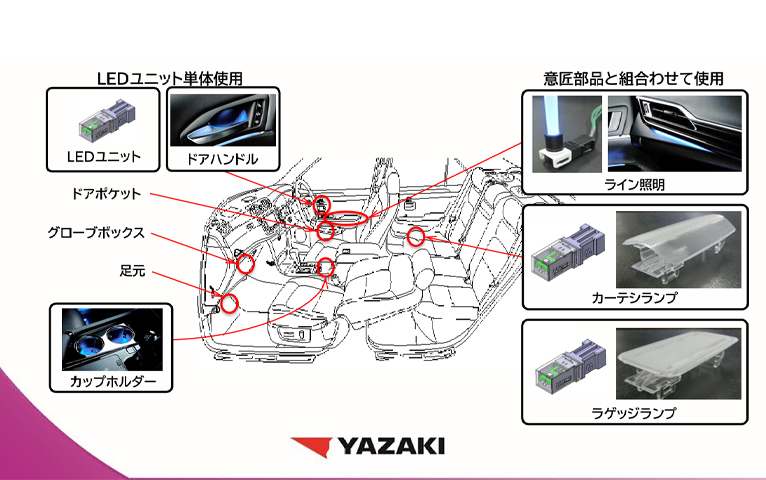 車室内のイルミネーションをトータルコーディネートする、様々な部位に共用可能な標準LEDユニット