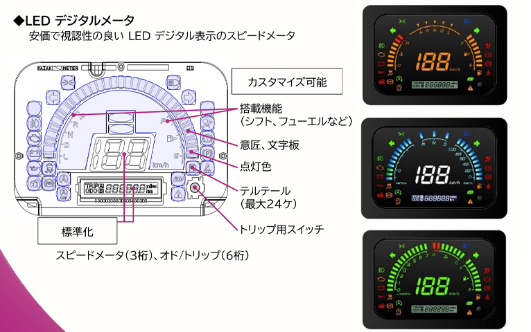 トレンドにあわせて変化するお客様の様々な要望に対応した量産メータ