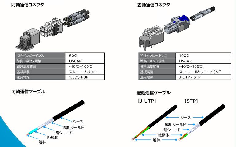 車内通信に対応した標準規格に準拠した高速通信ケーブルと車内通信に対応した標準規格コネクタ