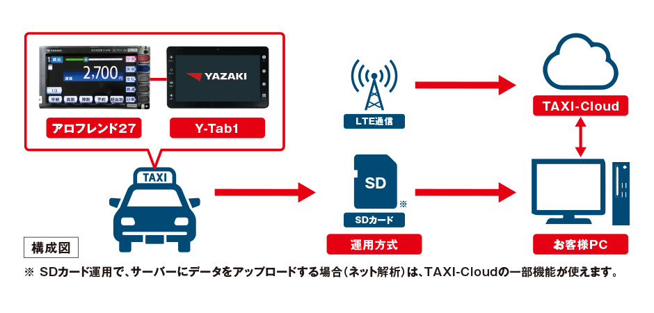 アロフレンド27はY-Tab1やTAXI-Cloudなどを使用できます。今後も様々な機能拡張を予定しております。