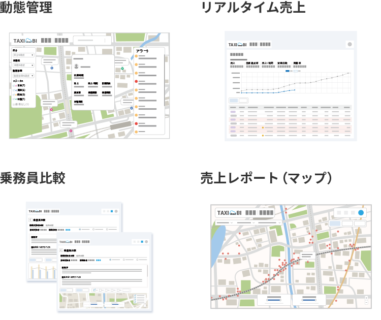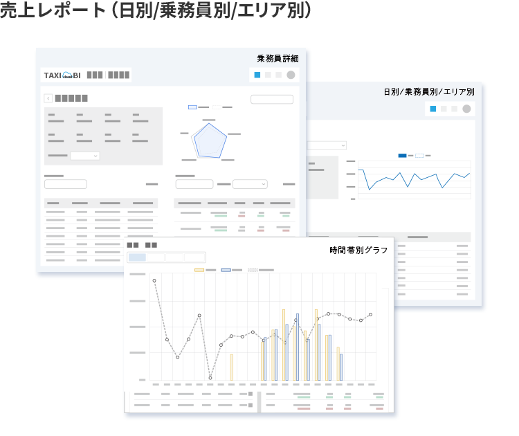 TAXI-Cloudの中のTAXI-Cloud BI という機能では、タクシーメーターから取得した情報を可視化・分析することが可能です。
